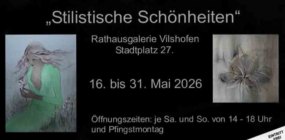 Zu sehen ist die Ausstellung vom 16. bis 31. Mai 2026 in der Rathausgalerie Vilshofen. Die feierliche Vernissage beginnt am 15. Mai 2026 um 18 Uhr. Geöffnet ist die Ausstellung samstags und sonntags von 14 bis 18 Uhr sowie am Pfingstmontag. Der Eintritt ist frei.